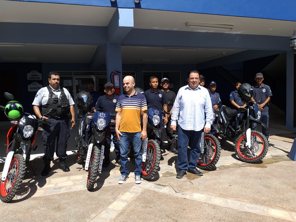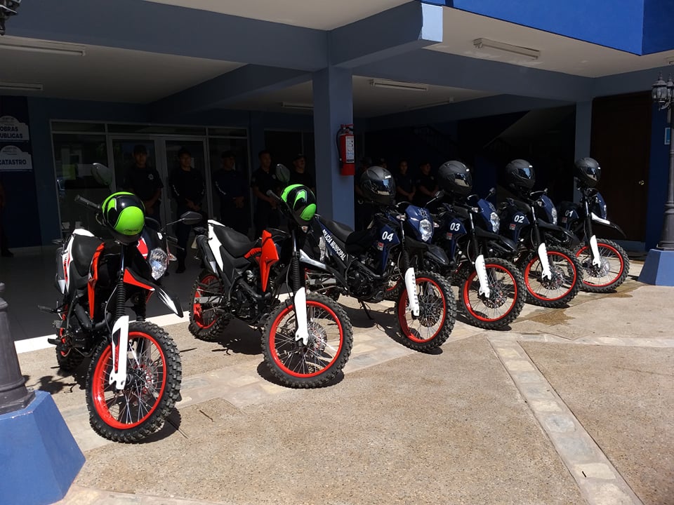 Aquismon, S.L.P. El día de ayer el Presidente Municipal Oscar Suárez Mendoza le hizo la entrega al comandante de la policía municipal a cargo de Alejandro González Mendoza seis moto-patrullas en donde el objetivo con este tipo de acciones es que los elementos puedan acceder a los lugares donde la unidades no puede hacerlo además de que también se pretende dar más seguridad al sector turístico.