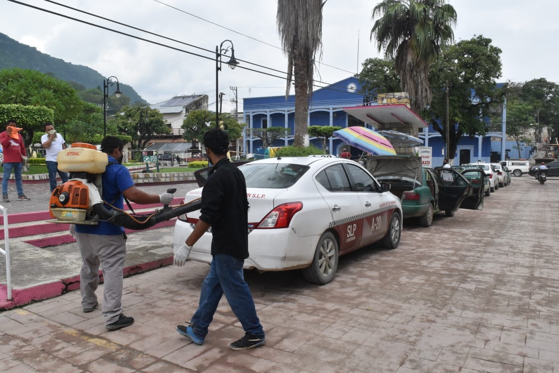 Como parte de las acciones emprendidas por el Gobierno de Aquismón encabezado por el Presidente Oscar Suárez Mendoza, encaminadas a preservar la salud de la población derivado de la contingencia covid-19, esta mañana se dio continuidad a la sanitización de unidades de transporte público, incluyendo vehículos de concesionarios y permisionarios de modalidad mixta, taxis que prestan el servicio desde la cabecera hasta el crucero Marcelino Zamarrón.