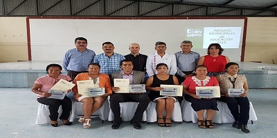 Aquismon. S.L.P.- El día de hoy autoridades municipales llevaron a cabo la entrega de premios municipales a siete profesores que resultaron seleccionados, esto como parte de los festejos por el día del Maestro, posteriormente se realizó un convivio en donde el mandatario municipal Oscar Suarez Mendoza hizo entrega de algunos premios.
