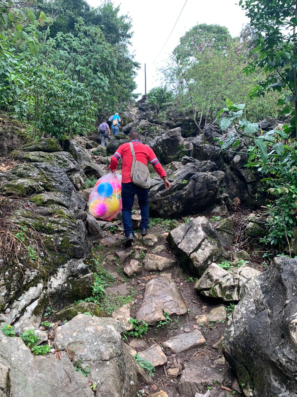 Aquismón, SLP. Hoy fue día de ayudar para el DIF Municipal, que implicó tener que hacer un largo recorrido a pie a una de las comunidades más alejadas, enclavada en la sierra, donde solo a pie se puede llegar.