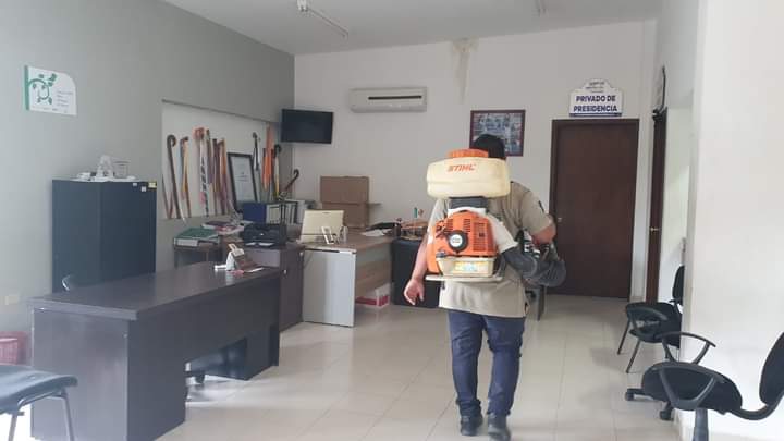 Refrendando con acciones el compromiso con la salud de los Aquismonenses, por instrucciones del Alcalde Óscar Suárez Mendoza el martes 3 de agosto se llevó a cabo la sanitización de los espacios de atención a la población, dando inicio con el Edificio del SMDIF, continuando con el área de bodega, la Unidad Básica de Rehabilitación “Carita de Ángel”, Casa AME, Casa Campesina y finalizando con las instalaciones de la Presidencia Municipal.