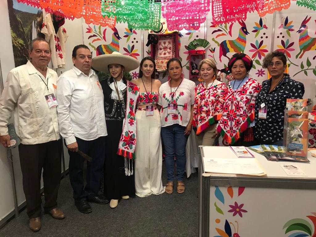 En el stand fueron recibidos por la Dirección de Turismo, Artesanas de nuestro municipio, Integrantes del Comité así como por la Reina de las Fiestas Tradiciones de Santiago y Santa Ana 2019 quien continuando con el promoción de nuestras tradiciones, el día de hoy portó un traje charro.