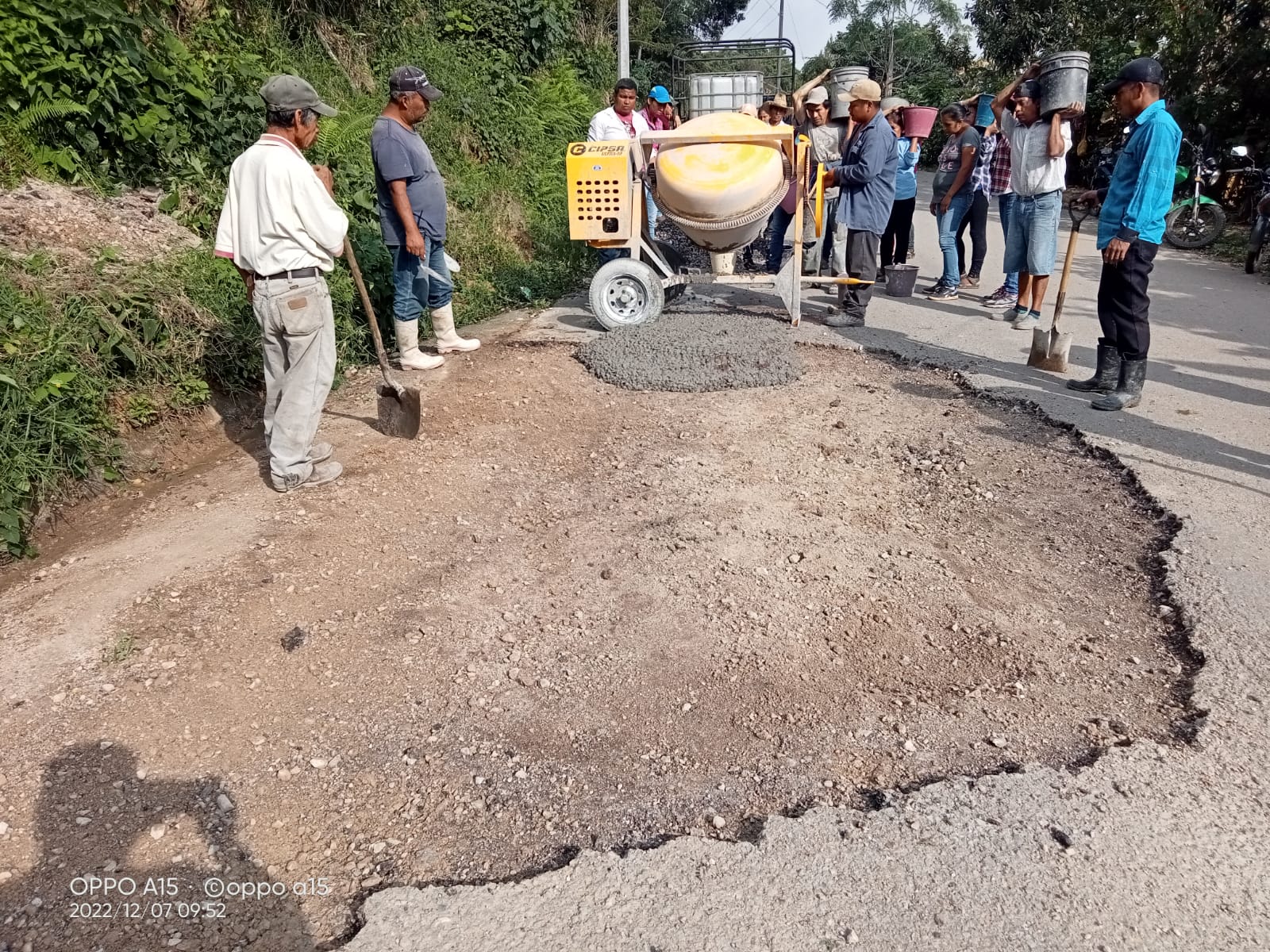 La jornada de bacheo que se realiza en varias carreteras de Aquismón con empleados del Ayuntamiento, no solamente es a través del vaciado de concreto hidráulico, sino que en algunos sectores, incluyen una reconstrucción completa.