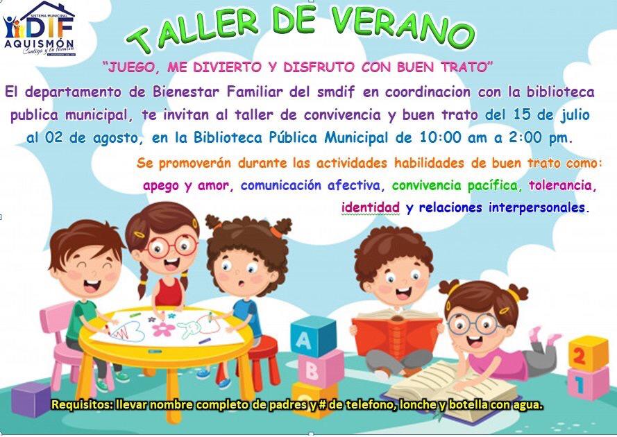 SMDIF INVITA AL TALLER DE VERANO “JUEGO, ME DIVIERTO Y DISFRUTO CON BUEN TRATO”