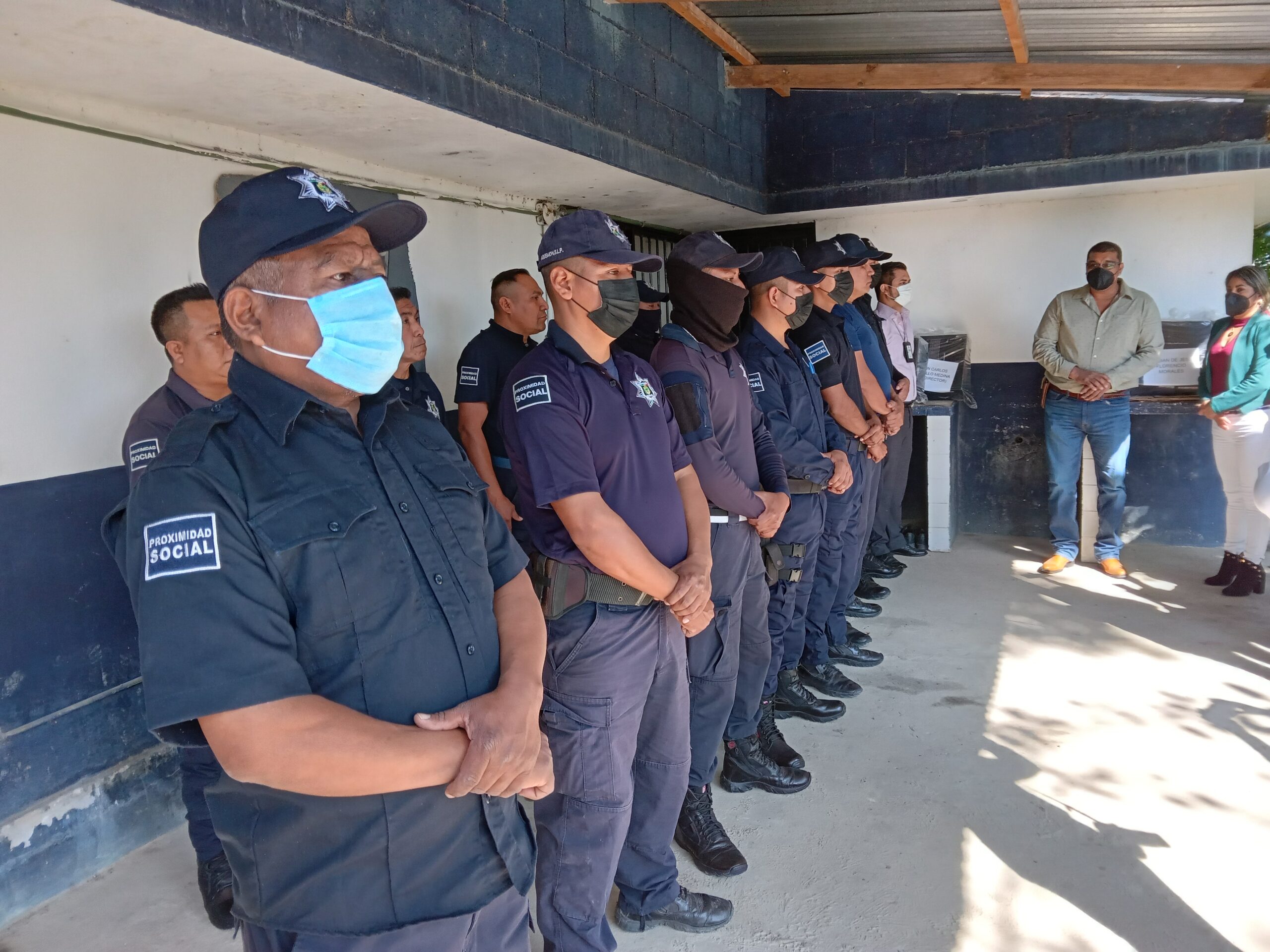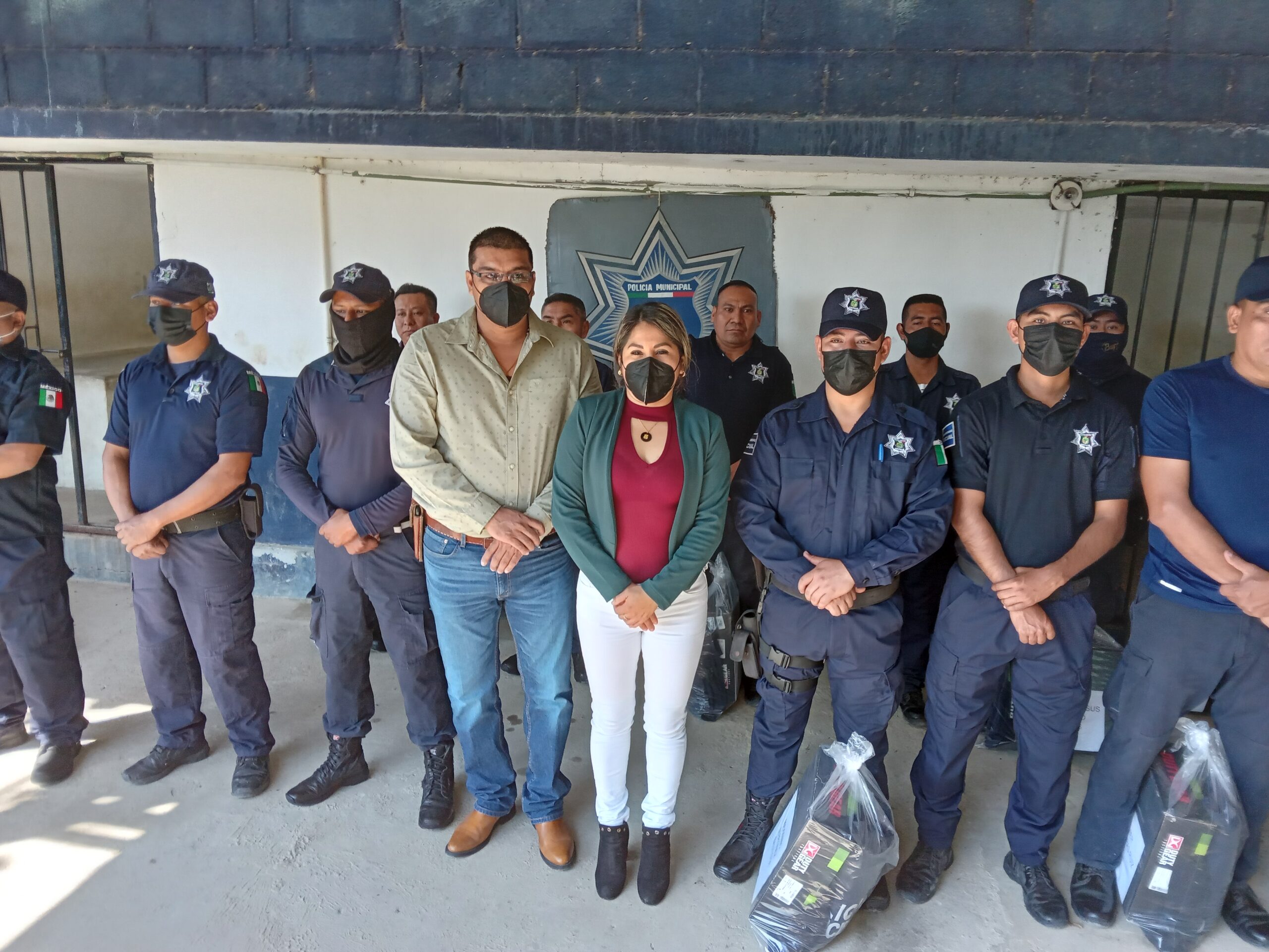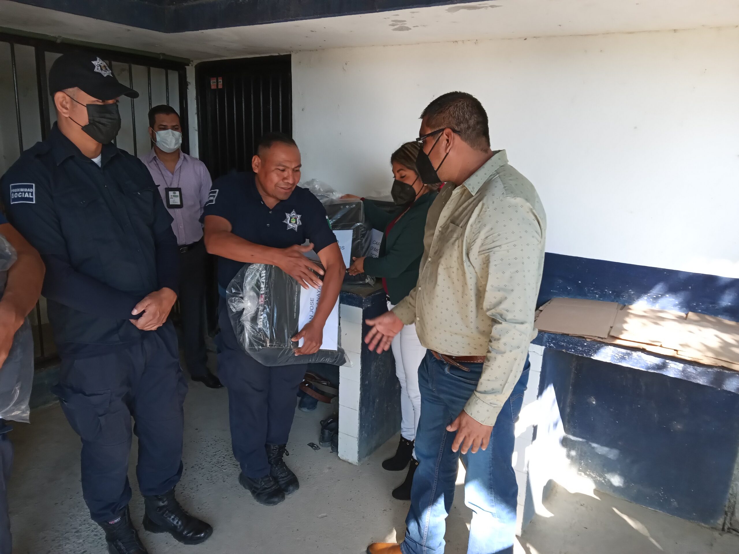 Temo Balderas entrega de uniformes a personal de seguridad pública municipal.