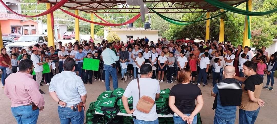 El Presidente Municipal, Cuahutemoc Balderas Yáñez continúa recorriendo las localidades de las diversas zonas del municipio, entregando mochilas y paquetes de útiles escolares, apoyando la economía de familias de alumnos de primaria y secundaria.