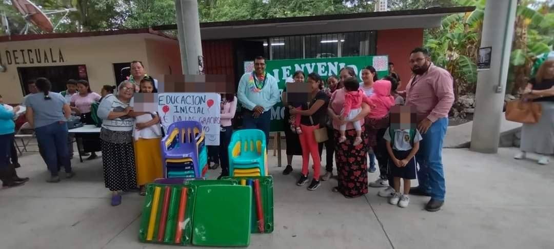 Ahí mismo madres de familia y maestros de Educación Inicial recibieron sillas que le fueron solicitadas al Edil hace unos días, quienes también agradecieron el apoyo con pintura para el local que ocupan actualmente como salón de clases.