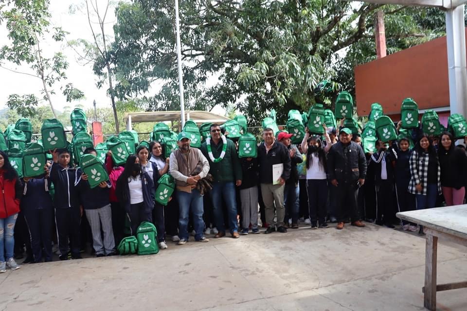 El Presidente Municipal Cuahutemoc Balderas Yañez realizó el día de hoy una importante gira de trabajo por la zona Tampaxal, después de hacer entrega de 2 equipos de sonido en la localidad de Xolmón, y de la reunión en Tampaxal Centro para el servicio de telefonía celular, se trasladó a la Telesecundaria «Benito Juarez» en donde llevó a cabo la entrega de útiles escolares y otorgó un paquete de láminas para ser utilizado en la institución.