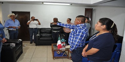 El encargado de tomar la protesta fue el alcalde Crispín Ordaz Trujillo quien estuvo acompañado por integrantes del cabildo como la maestra Juana Virginia del Ángel, Soledad Carreño, Enrique Castro, Gabriela Portales y Nora Maribel Guzmán, así como la secretaria del ayuntamiento Rosa María Flores Loredo.