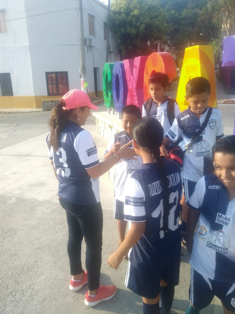 Al respecto, el titular del área de Deportes: L.E.F. Edgar Allan Martínez Hernández detalló que se hizo la solicitud a la mandataria para que brindara su apoyo consistente en uniformes de futbol para ambas categorías de la escuelita, ya que se encuentran disputando un importante torneo juvenil; mientras que la categoría menor se encuentra participando en el torneo local que se realiza cada sábado en la unidad deportiva.