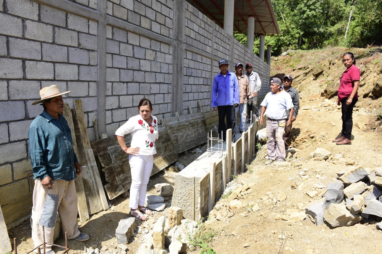 En Cuilonico supervisó la edificación del muro de contención a base concreto hidráulico del auditorio que con una inversión de 200 mil 761 pesos y resutlando beneficiados más de 349 habitantes.