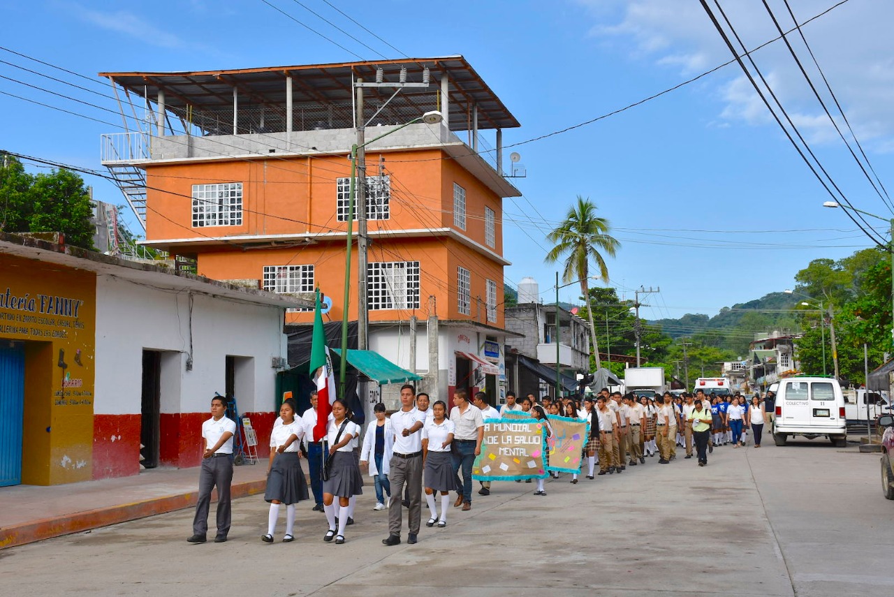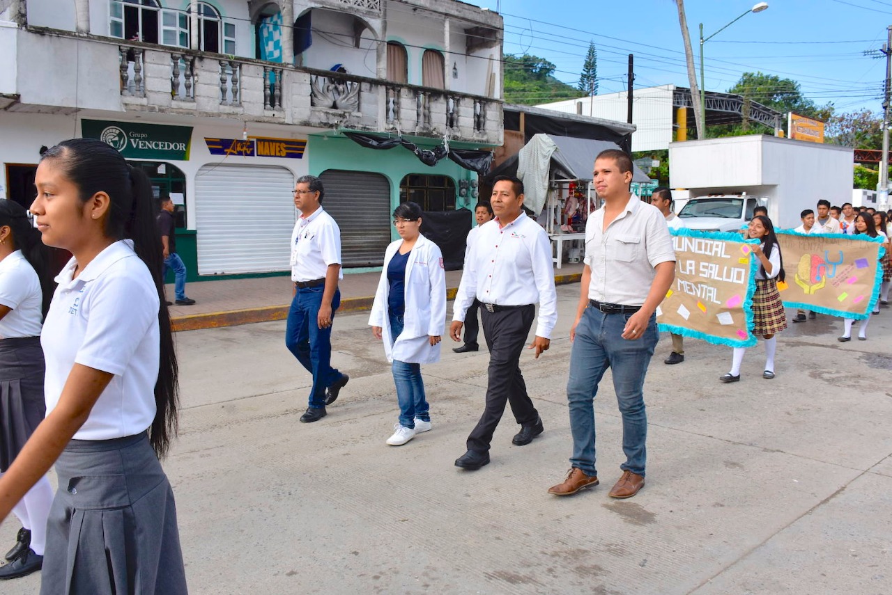 Coxcatlán, S.L.P.- En representación de la alcaldesa Ibeth Arenas Vidales el titular de Promoción a la Salud: L.S.C. Felipe Ángel Melo Zapata la mañana de hoy miércoles 9 de octubre, encabezó el desfile conmemorativo por el Día Mundial de la Salud Mental, cuyo objetivo es el de brindar información y orientar a los jóvenes en dichos temas.