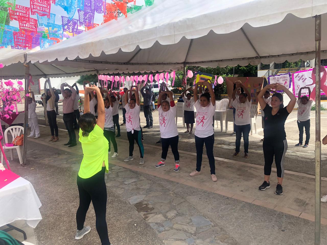 CoxcatlĂĄn, S.L.P.- En el marco por el DĂa Internacional de la Lucha Contra el CĂĄncer de Mama y por el Mes Rosa, la alcaldesa Ibeth Arenas Vidales en coordinaciĂłn con el Sistema Municipal para el Desarrollo Integral de la Familia (SMDIF) que dirige Ana Yansi HernĂĄndez Arenas llevaron a cabo una serie de conferencias, clases de sĂşper zumba y otras actividades en la Cabecera Municipal, mismas que fueron dirigidas a mujeres, pero tambiĂŠn a jĂłvenes y hombres.