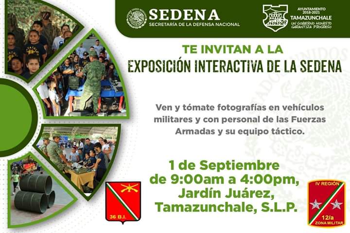 El Gobierno de Tamazunchale que encabeza Toño Costa invita a todas las familias Tamazunchalenses a esta Exposición Interactiva de la SEDENA, el cual será el primer evento con el que se dé inicio este mes patrio.