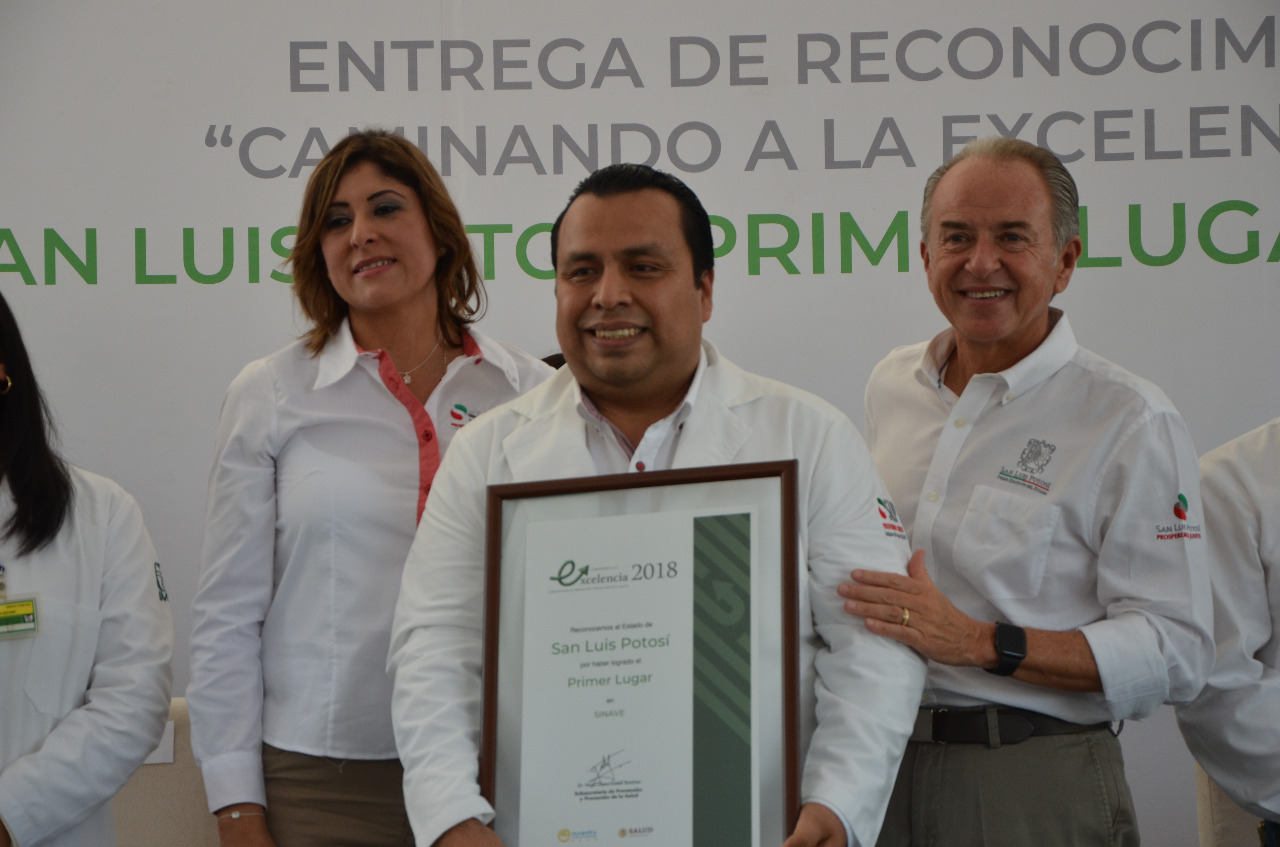 En su mensaje, el Gobernador Carreras, aplaudió el gran trabajo que ha desempeñado el personal de salud involucrado en los 31 programas en salud pública, permitiendo consolidar a San Luis Potosí como los mejores sistemas de salud en el país, y siendo el primer estado en repetir consecutivamente con este galardón en los indicadores “Caminando a la Excelencia”.