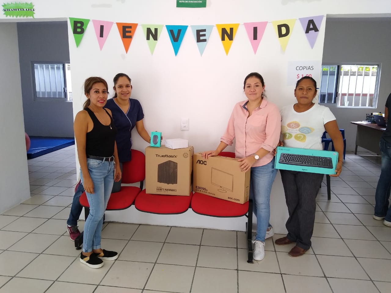La entrega se llevó a cabo a la 1 de la tarde en las instalaciones de la Unidad Básica de Rehabilitación (UBR), mismas que están ubicadas en la calle Guillermo Prieto, a un costado del Centro de Salud donde la presidenta del SMDIF entregó equipo de computo completamente nuevo y funcional, consistente en teclado, mouse, monitor, CPU y bocinas.