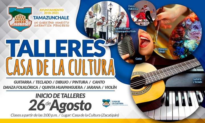 El Ayuntamiento de Tamazunchale que preside Toño Costa a través de la Casa de la Cultura, hace una cordial invitación a la ciudadanía para que se informe y asista a los talleres que se ofrecen para niños, niñas y jóvenes en materia cultural y artística.