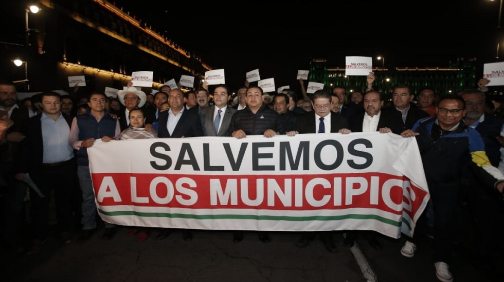 Más de 100 alcaldes protestan afuera de Palacio Nacional