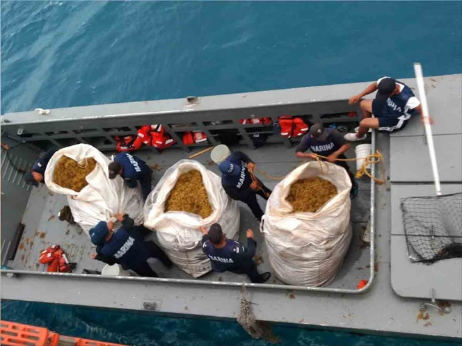 Una de las principales tareas de la Semar, es rehabilitar y construir un total de dos buques para la contención del sargazo en alta mar, así como definir en conjunto con la comunidad científica una estrategia de atención, adaptación y mitigación del arribo de sargazo.