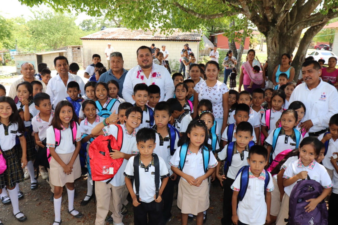1200 mochilas y Ăștiles escolares entrega presidente municipal de San Antonio