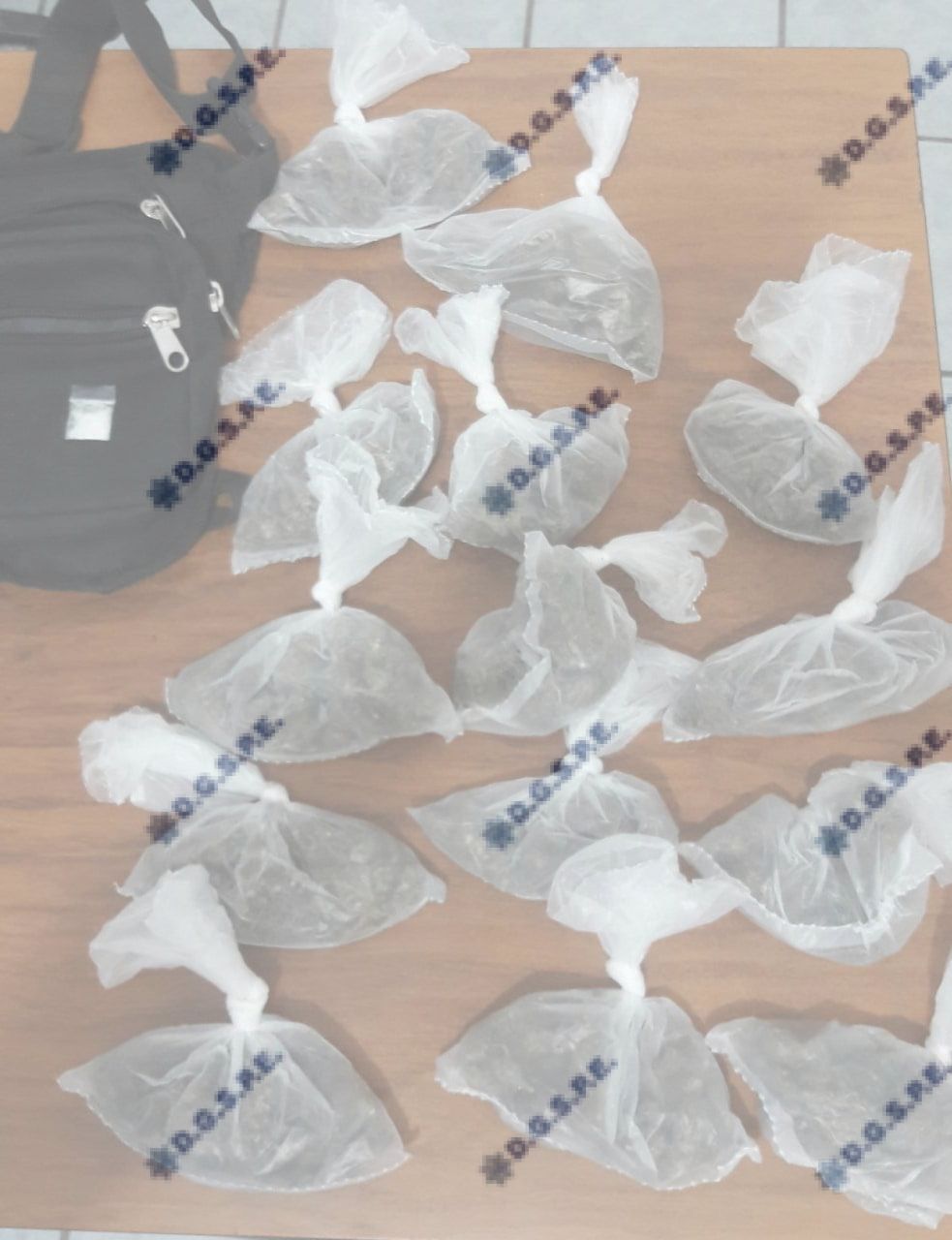 El detenido es Antelmo de 50 años de edad, a quien los elementos le realizaron una revisión, detectando 14 bolsas con marihuana con un peso de 300.9 gramos y una dósis de cristal de 0.7 gramos; las cuales llevaba en el interior de una bolsa tipo cangurera color negra.