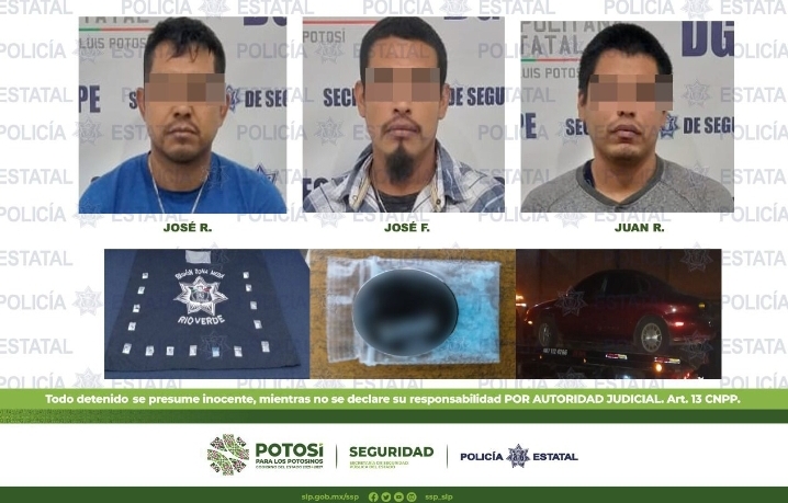 SAN CIRO DE ACOSTA, S.L.P.- Como parte de los operativos implementados para el combate a la distribución y venta de enervantes en la región Media, Policías Estatales detuvieron a tres hombres por el presunto delito de posesión de enervantes.