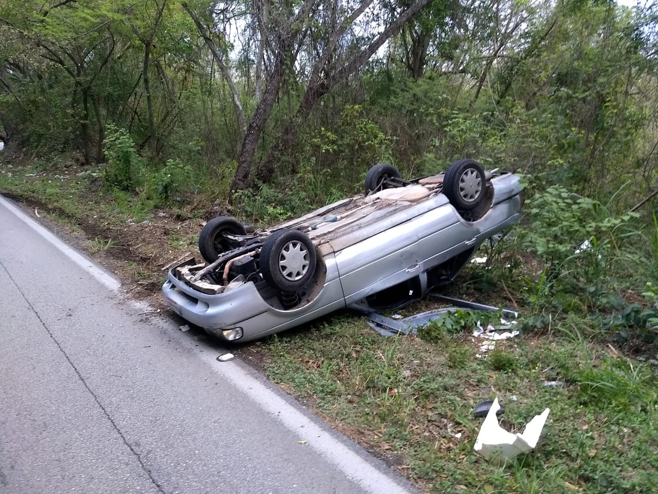 Ciudad Valles, SLP.- Hoy por la mañana alrededor de las 7:30 una familia que viaja sobre la carretera Valles Rioverde sufrió un accidente automovilístico en el kilómetro 13  a inmediaciones del ejido la Pitahaya en donde al parecer el chófer de un vehículo Nissan Tsuru color gris con placas del estado de Nayarit  perdió el control del vehículo en una curva  debido al exceso de velocidad.