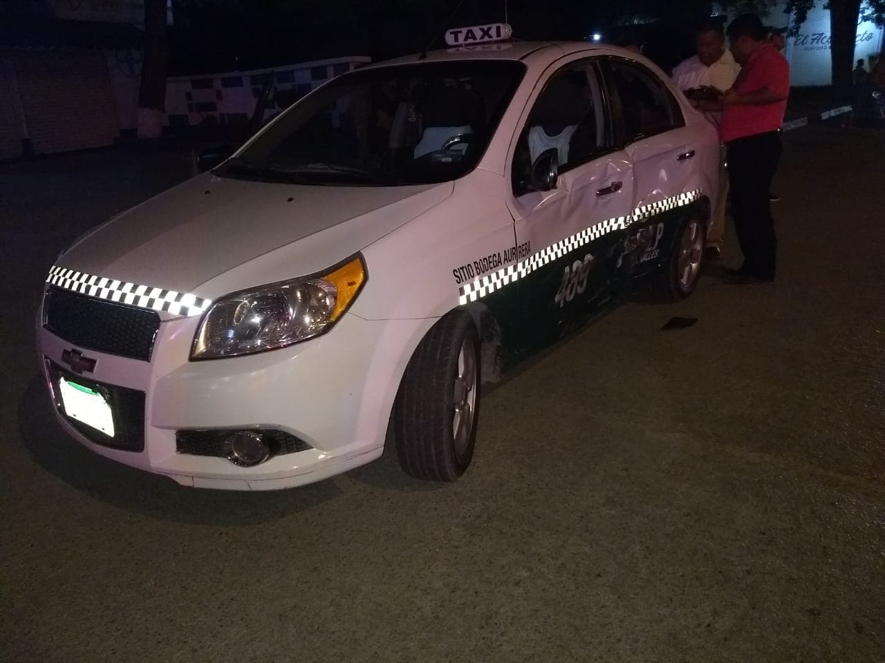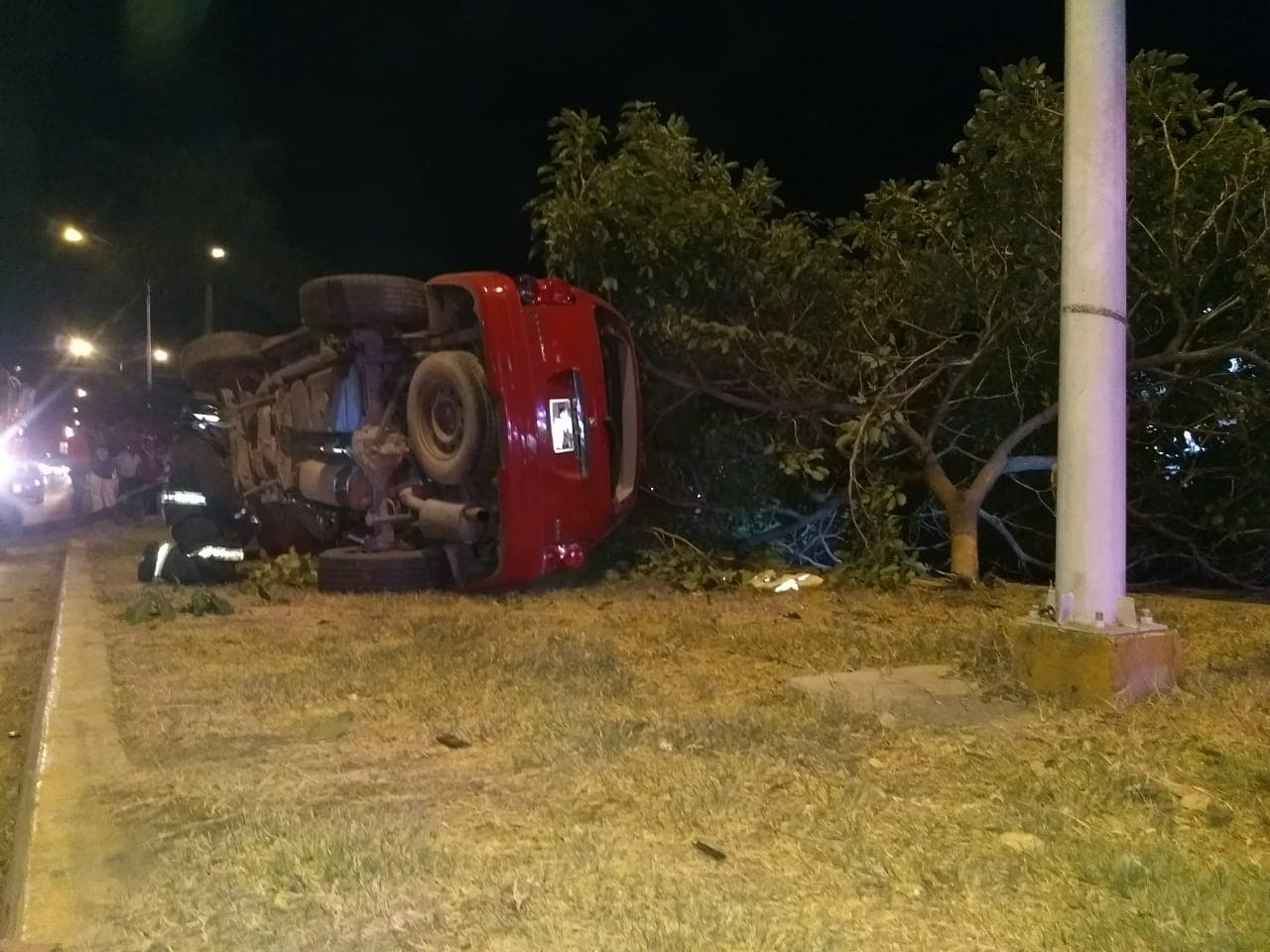 La camioneta impactó el costado izquierdo de un taxi del sitio Bodega Aurrera, luego se fue hacia el camellón, donde contra un árbol y finalmente se volcó.
