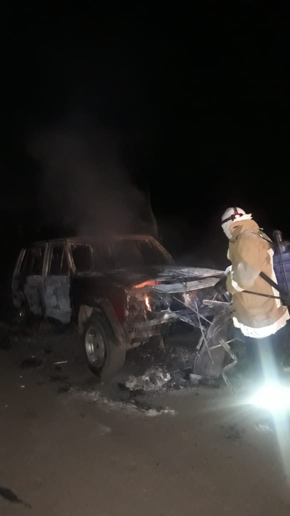 Tamasopo.S.L.P.- La noche de ayer se reportó un incendio de un vehĆculo en el camino Tamasopo al Cafetal el cual al parecer fue provocado aparentemente por un individuo.