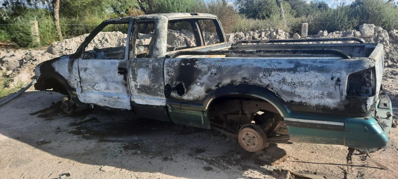 Por último, en el camino que conduce a la comunidad Las Morenas, en el municipio Villa de Zaragoza, agentes Estatales localizaron una camioneta marca Chevrolet, tipo pick up, color verde, modelo 1994, el cual se encontró calcinada en su totalidad. Tras consultar su estatus dentro de la base de datos del Centro de Control, Comando, Comunicaciones y Cómputo (C-4), el Operador Interviniente refirió que la unidad fue robada el 20 de octubre del año en curso, en la colonia Jardines del Sur.