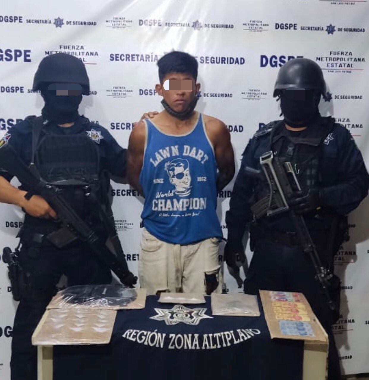 Matehuala S.L.P.- En el marco del reforzamiento de la prevención y seguridad en la Zona Altiplano, agentes de la Policía Estatal efectuaron la detención de una persona del sexo masculino, como probable responsable de delitos contra salud en su modalidad de posesión de droga.