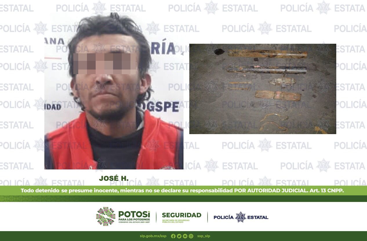 Los hechos fueron en las vías México-Laredo y el Boulevard Españita, lugar en donde los agentes Estatales detuvieron a José H., de 35 años de edad, a quien le aseguraron dos tubos metálicos, clavos y diversas piezas. El afectado solicitó del apoyo de las autoridades para proceder legalmente en contra del hombre.