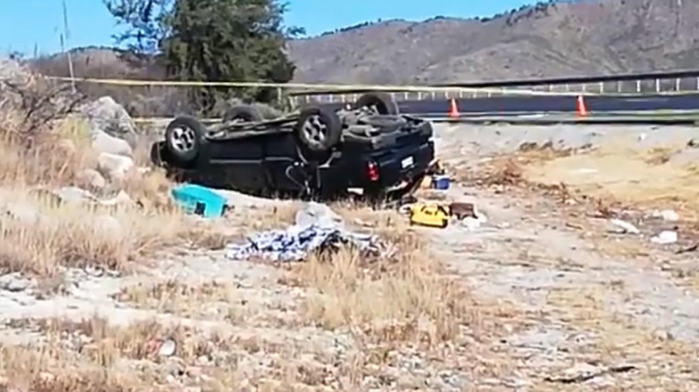 Volcadura sobre la Matehuala-Saltillo deja dos adultos y dos niƱos muertos