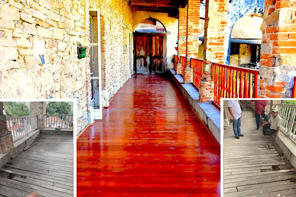 La mandataria municipal refirió que los trabajos consistieron en el cambio de horcones o tablas que son utilizadas como pasadero en la parte superior del inmueble, así mismo la construcción de un barandal a base de madera y se procedió a tapar los huecos de las paredes con tele-ciclónica, para evitar el ingreso o entrada de las aves, mismas que han dañado algunas secciones del antiguo monasterio.