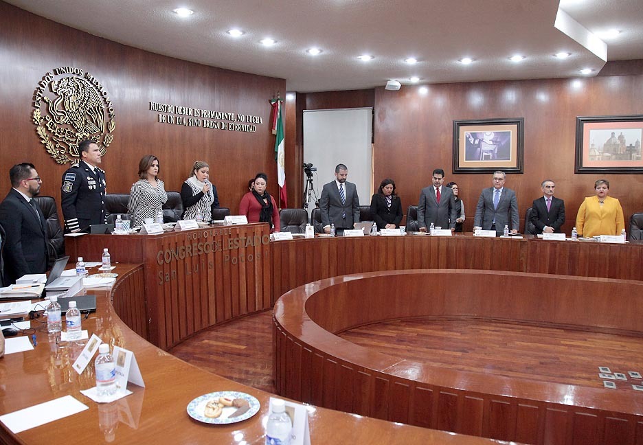 La presidenta de la Comisión de Seguridad Pública, Prevención y Reinserción Social diputada Beatriz Benavente Rodríguez condujo los trabajos en los que participaron integrantes de varias comisiones legislativas así como los funcionarios de la SSP Moisés Valerio López director de Análisis, Ricardo Galindo Ceballos director de Tecnología, David Baeza Tello coordinador de Control y el secretario técnico César Salazar.