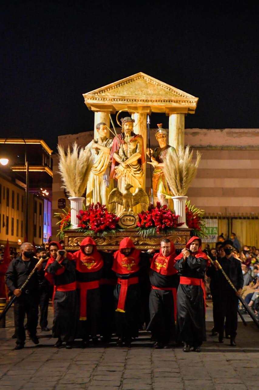Tal y como lo instruyó el Gobernador del Estado Ricardo Gallardo Cardona, en este 2022 regresó el evento cumbre de la Semana Santa en San Luis Potosí: la Procesión del Silencio, en la que participaron 29 cofradías integradas por alrededor de dos mil personas que, con su ritual, engalanaron las principales calles del Centro Histórico.