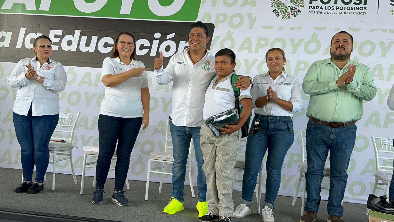 Tanquián de Escobedo, San Luis Potosí.- Para fortalecer el desarrollo integral de las niñas, los niños y adolescentes de Tanquián de Escobedo, el Gobernador de San Luis Potosí Ricardo Gallardo Cardona, arrancó con una inversión de 17 millones de pesos la nueva unidad deportiva municipal y entregó útiles escolares, mochilas, uniformes y zapatos en beneficio de cerca de 2 mil 500 estudiantes de primaria y secundaria.