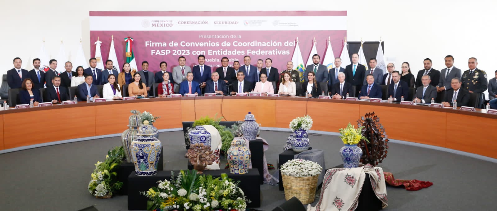 · El Mandatario acudió a la Firma del Convenio de Coordinación del Fondo de Aportaciones para la Seguridad Pública 2023 con Entidades Federativas celebrado en Puebla