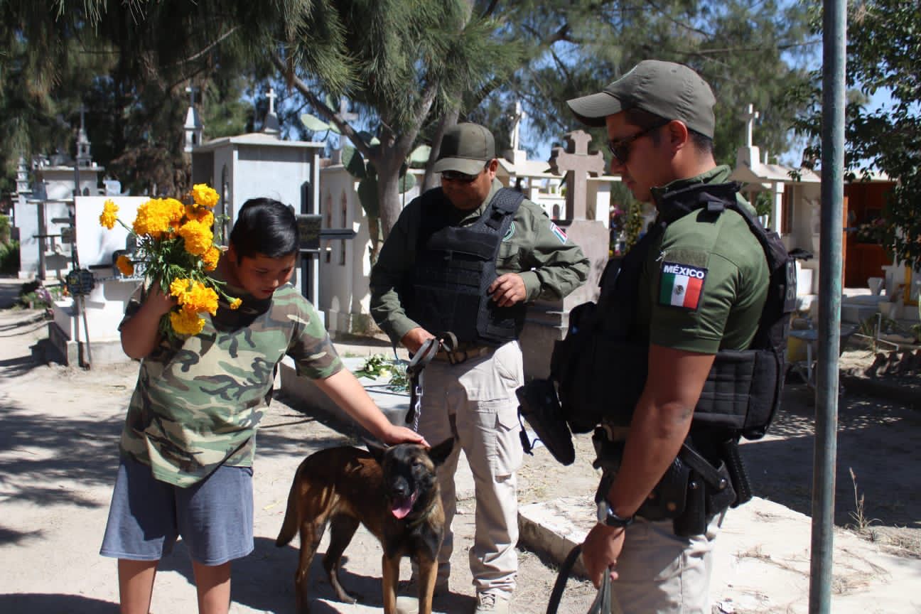 La SSPCE busca generar un ambiente pacífico en el interior, exterior y alrededores de cementerios, así como brindar condiciones de vigilancia y seguridad a las familias que acuden a ellos, el personal operativo de la GCE recorre sus instalaciones junto a canes entrenados preservando la paz pública y festividades sin incidentes.