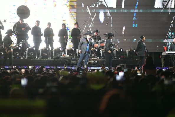 Región Media, San Luis Potosí.- La gran presentación de Alfredo Olivas durante la Posada Navideña celebrada este viernes en la región Media, logró reunir a más de 45 mil asistentes, quienes disfrutaron de una sana convivencia en familia y recibieron de las manos del Gobernador de San Luis Potosí Ricardo Gallardo Cardona, cobertores y juguetes para las y los niños.
