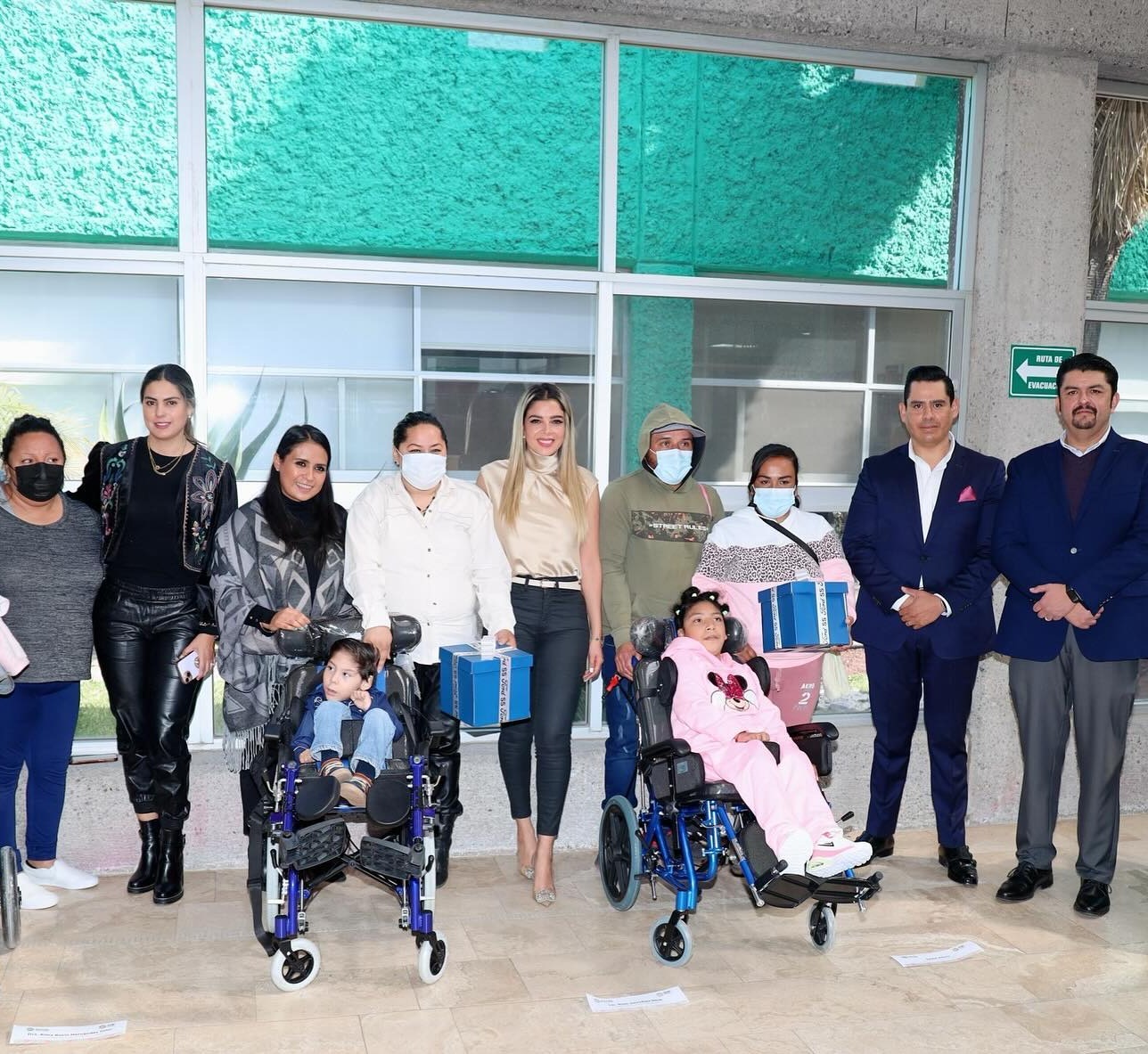 Como resultado de las gestiones de la presidenta honoraria del Sistema Estatal para el Desarrollo Integral de la Familia (DIF), Ruth González Silva, directivos de la empresa Ford San Luis entregaron sillas de ruedas para niñas y niños con parálisis cerebral infantil (PCI), que cuentan con una estructura para brindar una mejor postura y movilidad a las y los menores que las requieren.
