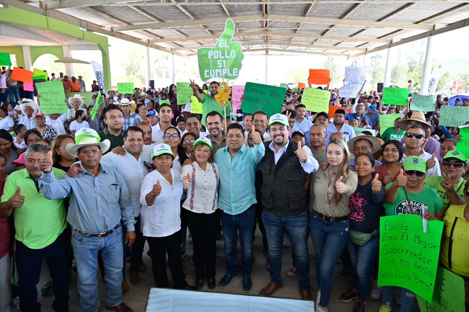 Ante decenas de familias reunidas en la galera comunal, en un ambiente festivo, el Gobernador del Estado destacó que avanza la transformación de San Luis Potosí con el apoyo a las familias, quienes merecen toda la atención, con caminos y carreteras de calidad que incrementará la plusvalía de sus viviendas y propiedades, y que se complementa con programas sociales como becas alimentarias, pensiones para adultos mayores, madres solteras, entre otros.
