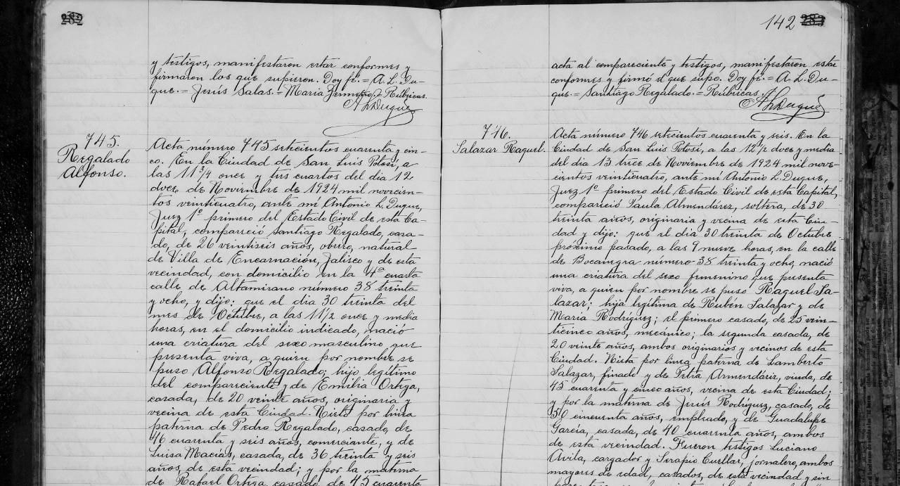 Para tal efecto, las y los usuarios interesados en tramitar actas de nacimiento, defunción y matrimonio correspondientes al Estado del periodo del año 1860 a 1930, pueden acudir al AHESLP y solicitar una búsqueda en la base de datos de dicha sección.