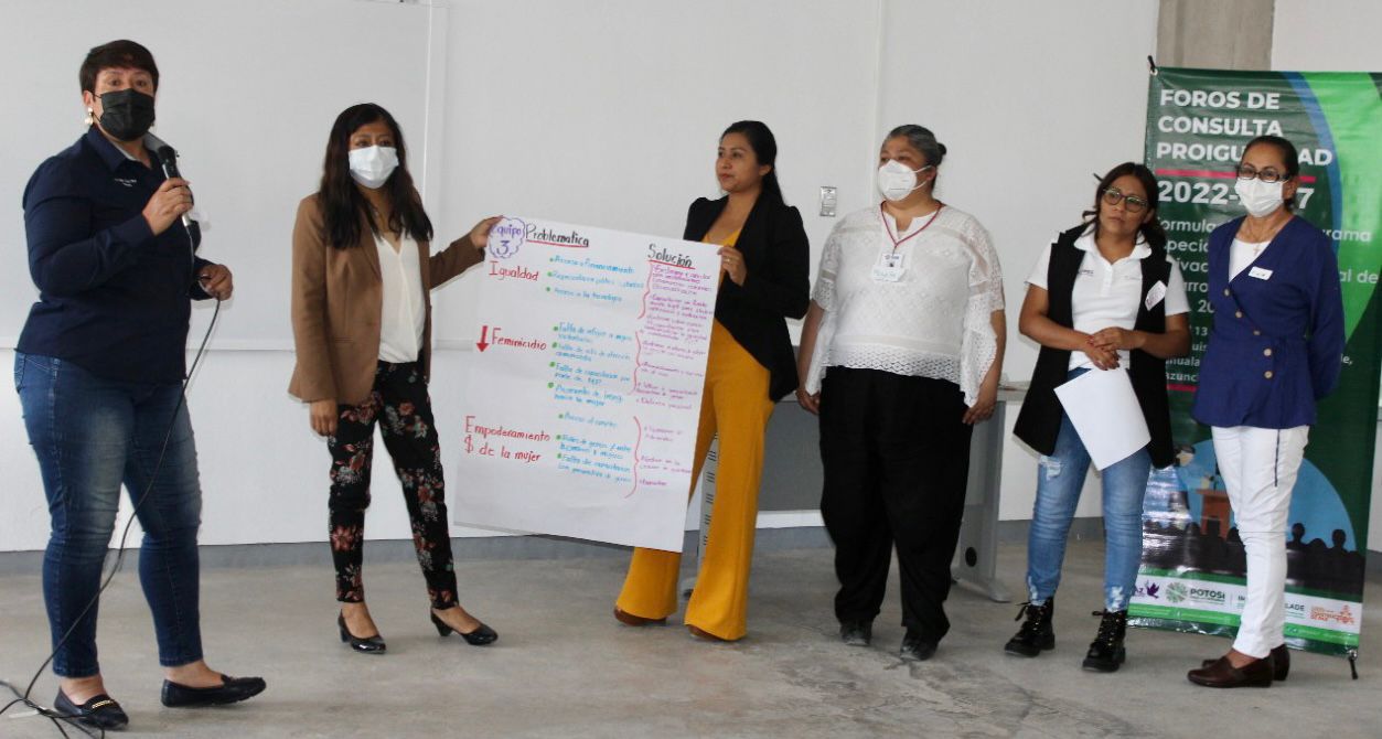 Atendiendo la instrucción del Gobernador Ricardo Gallardo Cardona de incluir el sentir social, las inquietudes, necesidades y propuestas en el Plan Estatal de las Mujeres, el Instituto de las Mujeres del Estado (Imes) llevó a cabo el Segundo Foro de Consulta PROIGUALDAD 2022-2027 en el municipio de Salinas, con una gran participación de distintos sectores, con lo que avanza en la construcción de políticas públicas con perspectiva de género e igualdad.