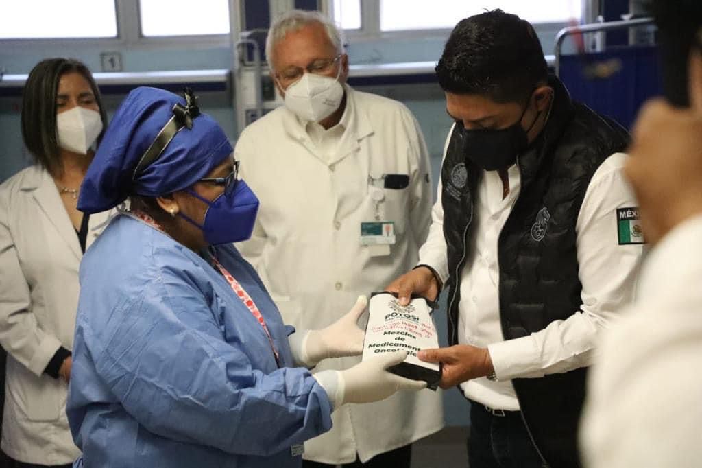 El titular de la Secretaría de Salud, Daniel Acosta Díaz de León, destacó que, gracias al Gobernador Ricardo Gallardo Cardona, que logró la instalación de la Central de Mezclas Oncológicas a mil personas sin derechohabiencia permitiéndoles recibir su tratamiento de forma gratuita.