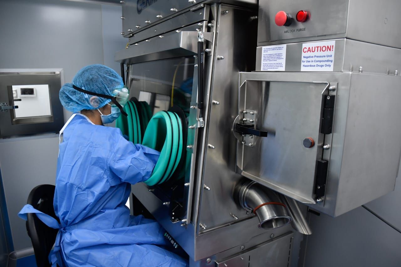 Detalló que este laboratorio grado farmacéutico recibirán los medicamentos oncológicos que son tóxicos para las vías respiratorias, por lo que se protegerá al personal y la formula al abrirla bajo condiciones de esterilidad dentro del contenedor diseñado específicamente para este fin.