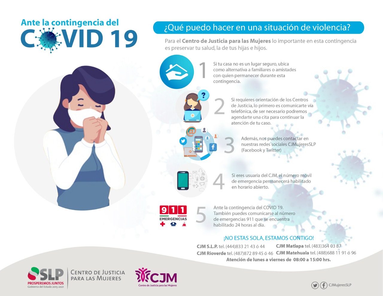 Las mujeres potosinas pueden contar con asistencia y asesoría vía telefónica o a través de las redes sociales del CJM y de ser necesario podrán agendar una cita para continuar la atención de sus casos.