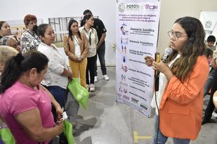 • Se ha proporcionado información acerca de los servicios gratuitos que ofrece la institución a mujeres víctimas de violencia de género Para fortalecer el apoyo a las mujeres en materia de seguridad que el Gobernador Ricardo Gallardo Cardona implementa en todo el Estado, el Centro de Justicia para las Mujeres (CJM), ha brindado atención a más de 300 mujeres visitantes en su módulo de la Feria Nacional Potosina (Fenapo) edición 2023, lo que genera la oportunidad para que más mujeres, qué pudieran estar sufriendo violencia de género, puedan tener acceso a la justicia de una forma segura, profesional y gratuita. La titular de la dependencia estatal, Mónica Kemp Zamudio, compartió que a diario se brinda apoyo a mujeres que han sido agredidas de manera física, emocional y psicológica. Destacó que, una de la información que más ha llamado la atención entre las visitantes al módulo del CJM en el evento ferial es el del “violentómetro”, en el cual se expone la categorización de actitudes negativas que una mujer puede identificar por parte del presunto victimario, a finvfe prevenir alguna situación que transgreda su integridad física y emocional. Asimismo, el personal que diariamente se encuentra en el stand del Centro de Justicia para las Mujeres, difunde oportunamente la campaña que diseñó el Secretariado Ejecutivo del Sistema Nacional de Seguridad Pública (SESNSP), en conjunto con la Comisión Nacional para Prevenir y Erradicar la Violencia contra las Mujeres (Conavim), la cual se trata de exponer los distintos tipos de violencia que existen a nivel familiar, laboral, escolar y social. Finalmente, Mónica Kemp Zamudio, compartió que se organizó una atención especial a personas con alguna discapacidad, así como a mujeres integrantes de la Red de Mujeres Constructora de la Paz (Mucpaz), a quienes se les proporcionó toda la información relacionada con los servicios gratuitos y áreas con las que cuenta el Centro de Justicia para las Mujeres del Estado en beneficio de las potosinas.