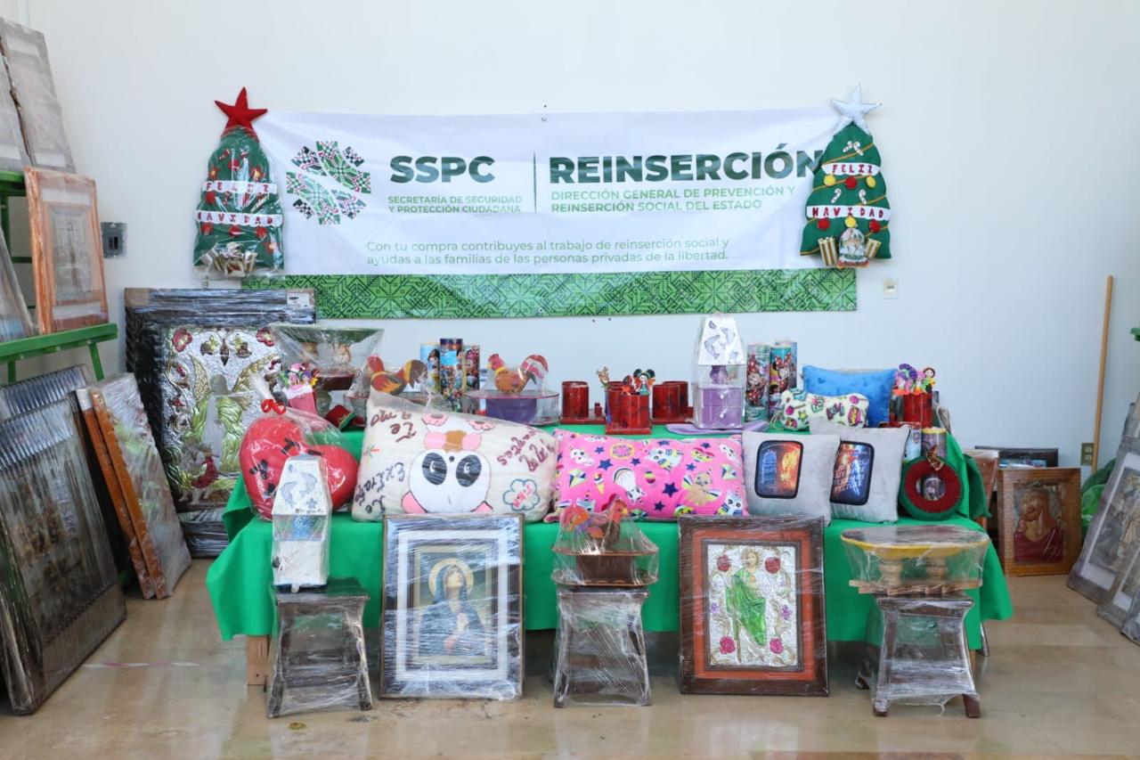 Buena respuesta y apoyo de la población ha recibido en el «Festival Navideño 2022» la exposición y venta de artículos, artesanías y creaciones de la población femenil y varonil del Centro Penitenciario Estatal de la Capital, en la Delegación de La Pila, como parte de fomentar y reconocer el talento, autoempleo y creatividad de quienes habitan el Penal, abriendo una posibilidad de beneficio económico para las Personas Privadas de la Libertad (PPL´s) y sus familias.