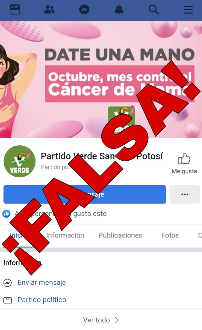 Dicha página solamente tiene dos publicaciones, y dado que no es administrada por personal del PVEM en San Luis Potosí, ya fue denunciada mediante las herramientas que la red social Facebook proporciona.